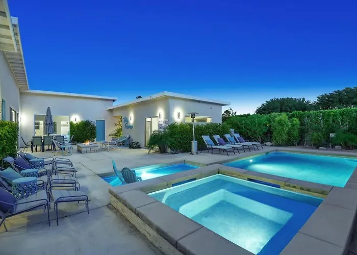 The 5-bedroom Deja Blue - Alice Lodging Palm Springs villa is located 3.9 km from the Palm Springs Dog Park and provides a Jacuzzi. The property includes complimentary private parking and a patio with views of the mountain.